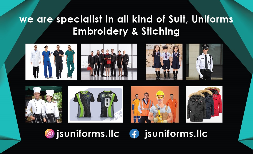 WELCOME to JS Uniforms LLC, where we weave excellence into every thread, elevating your image with our distinctive uniforms in Ajman, UAE. As your premier destination for customized uniform solutions, we take pride in crafting corporate, school, hotel, security, and driver uniforms that redefine quality and style.